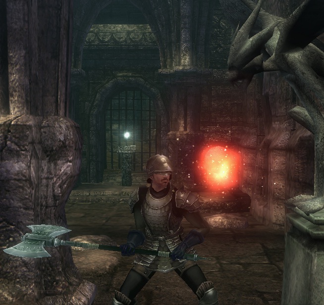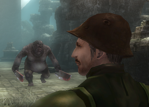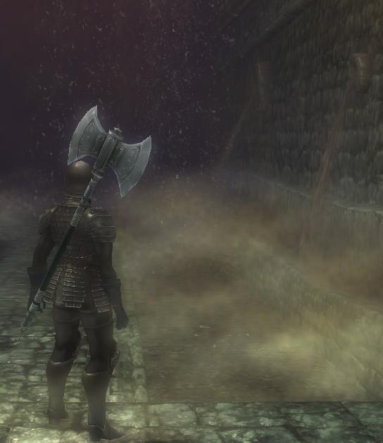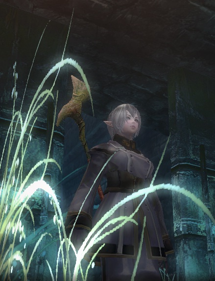 数十秒待ったけど返事も動きもないので通り抜けようとしたら、これインプにつっかえちゃって通り抜けらんないしw『ああ、しゃがんで・・・』ってしゃがんでも無理だしwww仕方ないから一言断ってからインプやっつけちゃおうと思った矢先にスイッチが入ったようにその斧FIGが斧を振り始めたので無事通りぬけられました。ラグか何かかねこれ?そこからは楽に石版を読んで、決戦場2へ!!↓